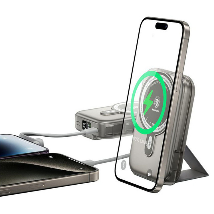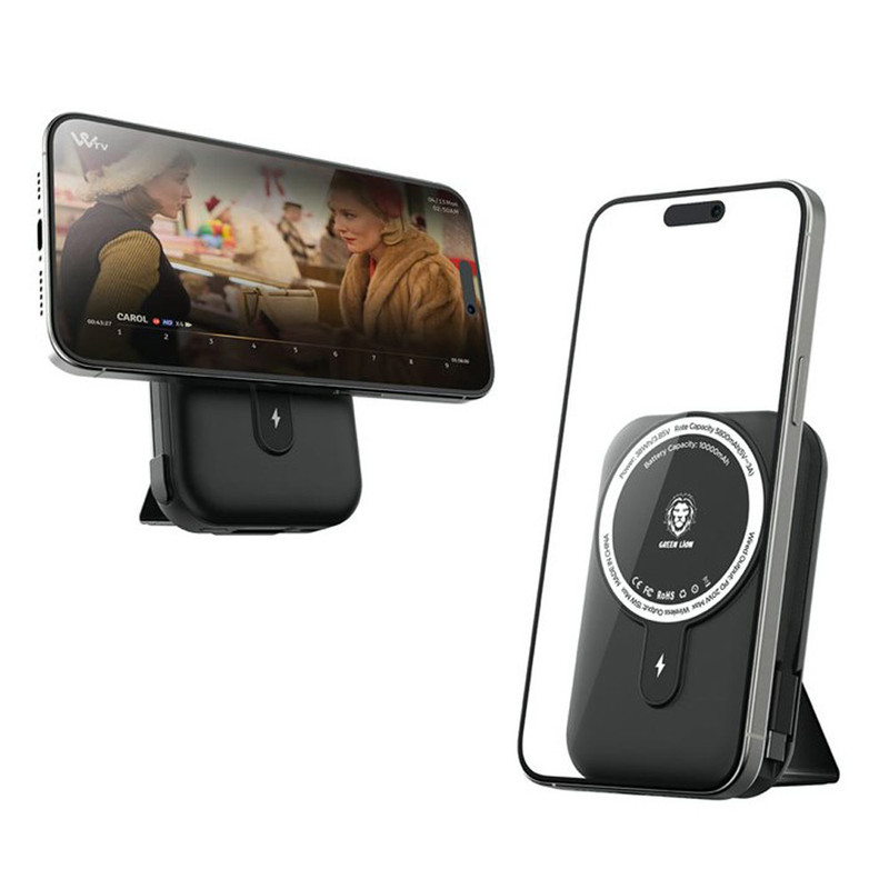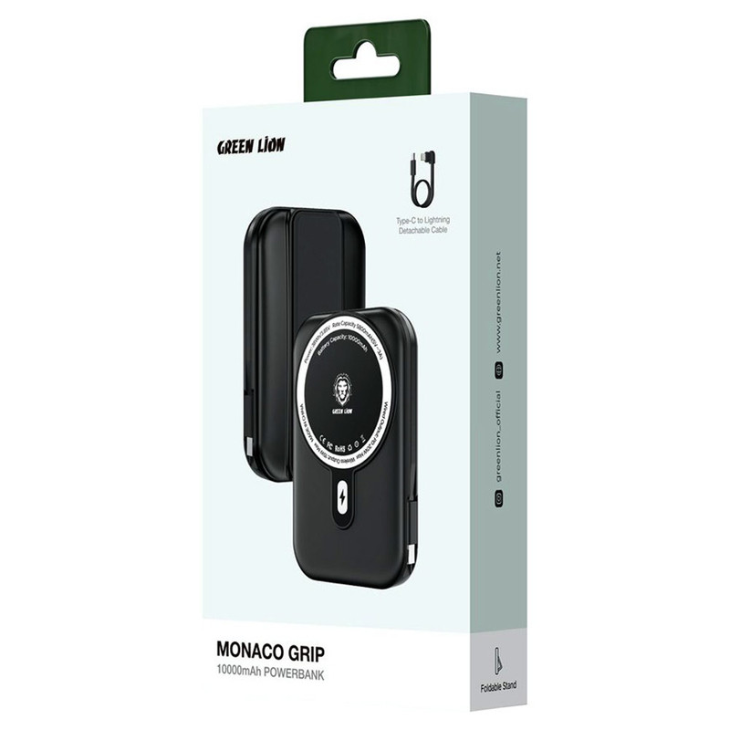 پاوربانک مگ سیف گرین موناکو گریپ 10000mAh ساعت با کابل تایپ سی سرخود دارای ابعاد 100.3x67.3x24.5 میلی متر و وزن فقط 190 گرم در دو رنگ مشکی با کد GNMGP10KPBBK و تیتانیوم با کد GNMGP10KPBTI تولید شده است که آن را به شارژر همراهی خوش دست و قابل حمل تبدیل کرده است. ظرفیت واقعی باتری این کالا 5800mAh می باشد و جنس این محصول از PC و ABC است و با این پاوربانک سبک وزن می توان هم موبایل را با کابل شارژ کرد و هم موبایل های دارای قابلیت شارژ بی سیم را به صورت وایرلس شارژ کرد، این پاوربانک به آهنربای نئودیمیوم فوق العاده قوی مجهز شده است که به دستگاه شما محکم می چسبد و می تواند هم موبایل را با کابل شارژ کند و هم موبایل هایی که دارای قابلیت شارژ بی سیم هستند رو به صورت وایرلس شارژ کند، همین طور این دستگاه دارای ویژگی آهنربایی یا مگ سیف برای موبایل های آیفون 12 به بالا است و آن ها را در این حالت شارژ می کند. لازم به ذکر است که این محصول دارای درگاه تایپ سی می باشد و ولتاژ و شدت جریان ورودی آن که برای شارژ کردن این کالا مناسب است، 5V/3A یا 9V/2A بوده و این نکته مهم است که با شارژر مناسب آن را شارژ کنید که با این ورودی ها متناسب باشد. توان خروجی شارژ وایرلس آن تا حداکثر 15 وات و توان خروجی درگاه لایتنینگ 20 وات، خروجی تایپ سی آن تا حداکثر 20 وات و از تکنولوژی شارژ PD با توان 20 وات پشتیبانی می کند.