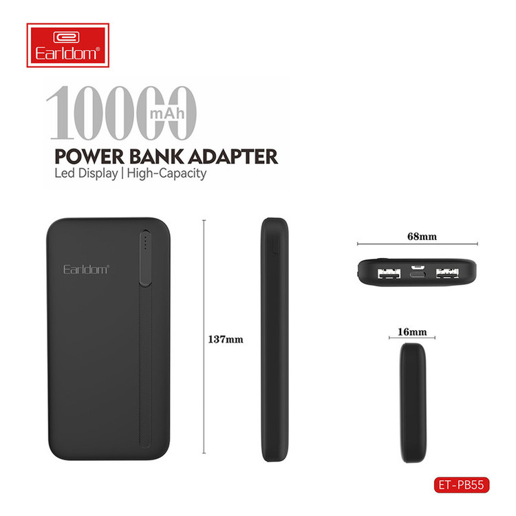 ظرفیت 10000میلی آمپر دارای 2 پورت USB دارای پورت Micro و Type c