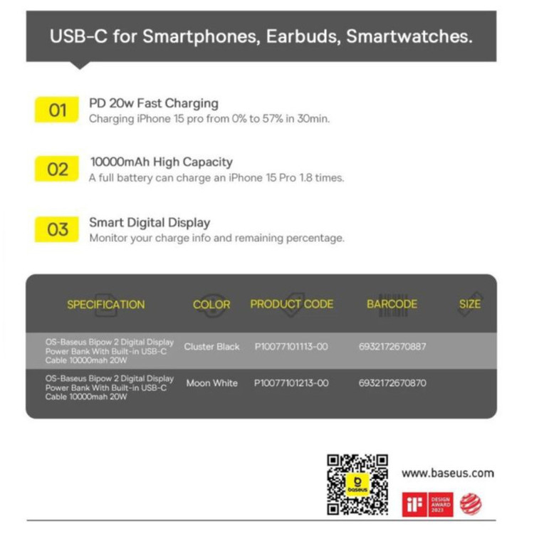 مشخصات فنی: درگاه تایپ سی ورودی/خروجی است | صفحه نمایش دیجیتال میزان باتری