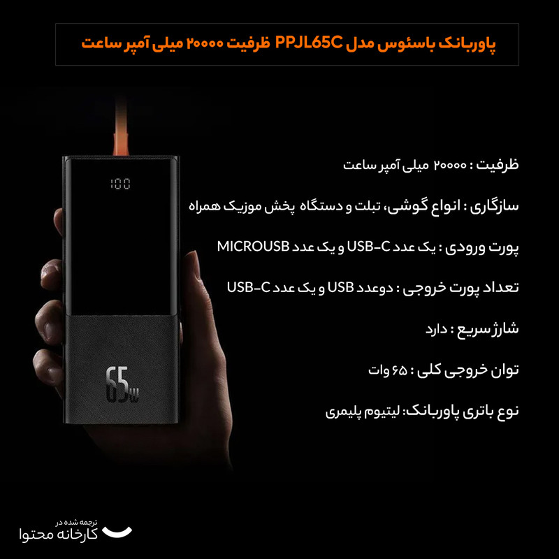 نوع باتری پاوربانک: لیتیوم پلیمری