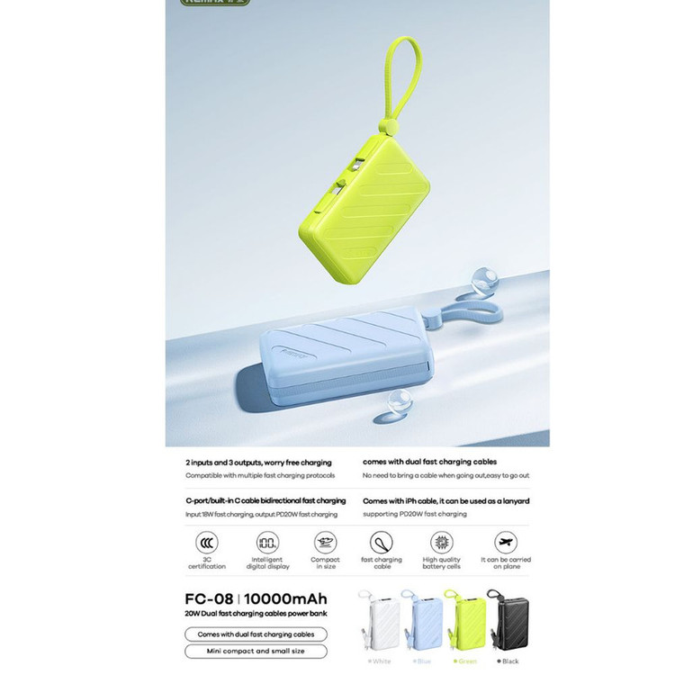 مشخصات فنی: ظرفیت ۱۰۰۰۰ میلیآمپرساعت، توان شارژ سریع ۲۰ وات، دو کابل داخلی، ورودی و خروجی Type‑C و USB، نمایشگر دیجیتال و سیستمهای حفاظتی هوشمند.