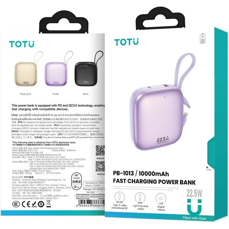 پاوربانک توتو مدل PB-1013 ظرفیت 10000میلی امپر