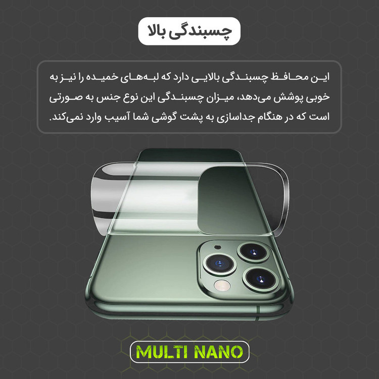 برش دقیق و مناسب با تمامی کاور ها - عدم پوشش لبه ها (بامپر) - انعطاف پذیر و خود ترمیم - دارای پوشش تمام چسب - دارای خاصیت کشسانی