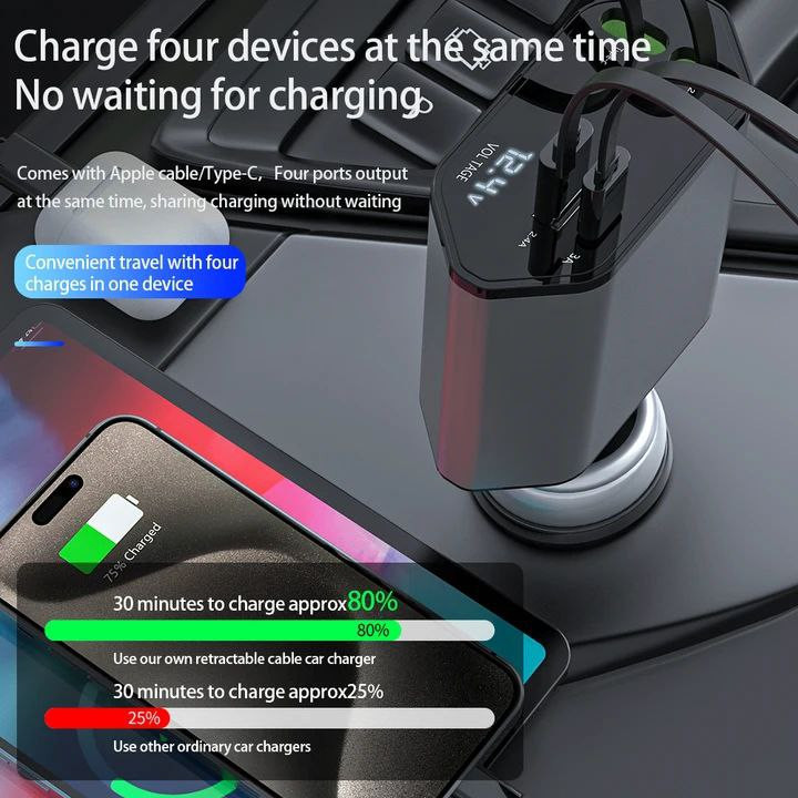 شارژر فندکی فست شارژ 4 منظوره دارای صفحه دیجیتالی و میتونید همزمان هم گوشی , تبلت . آیپاد خود را شارژ کنید