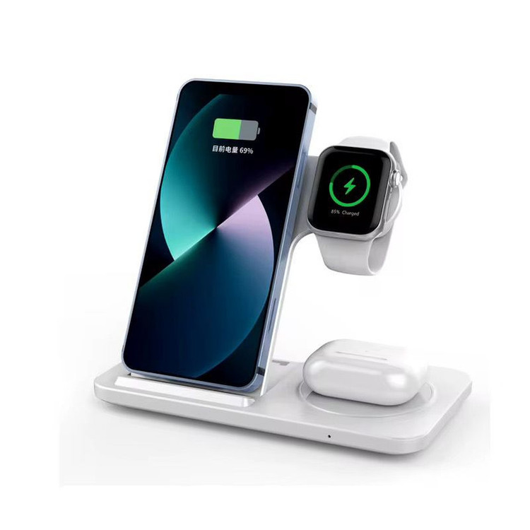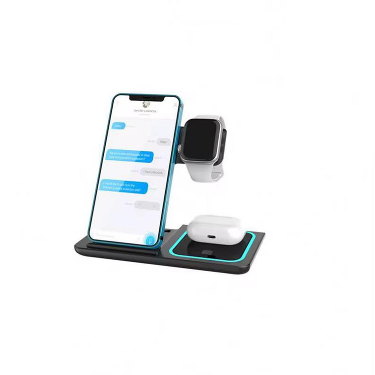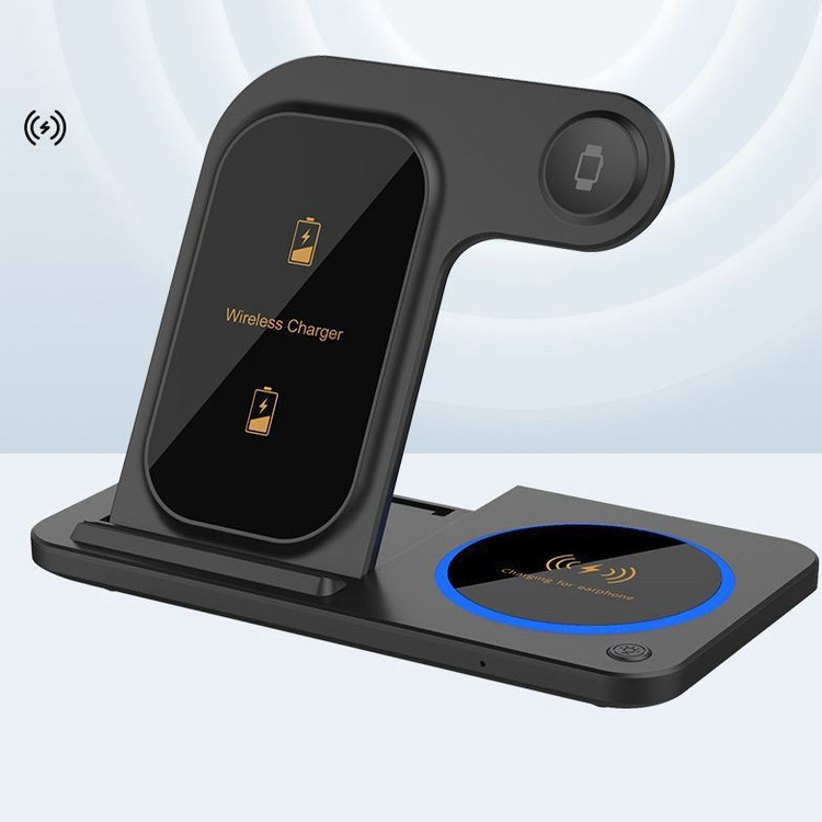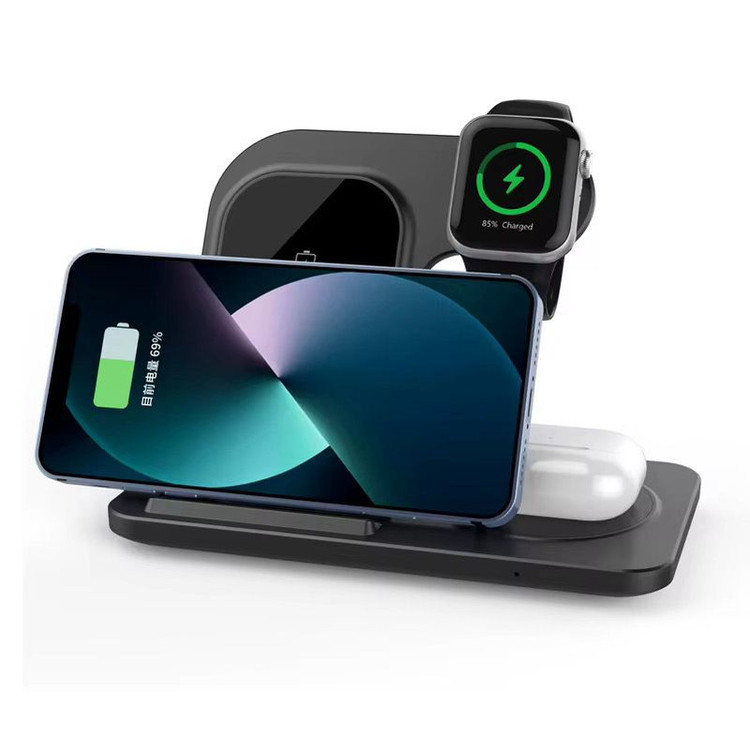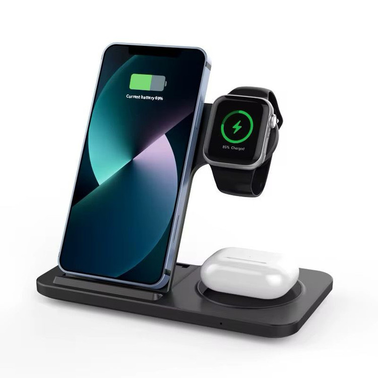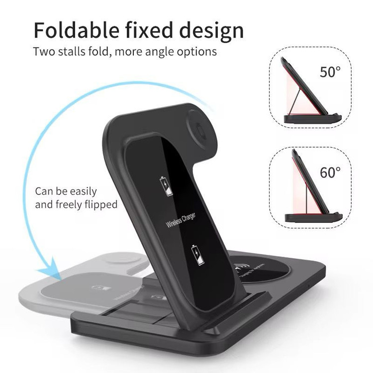 شارژر وایرلس سه کاره آیفون، اپل واچ و ایرپاد | یک شارژر و استند تاشو چند کاره مدرن که می تواند موبایل، اپل واچ و ایرپاد شما را بصورت همزمان شارژ کند.