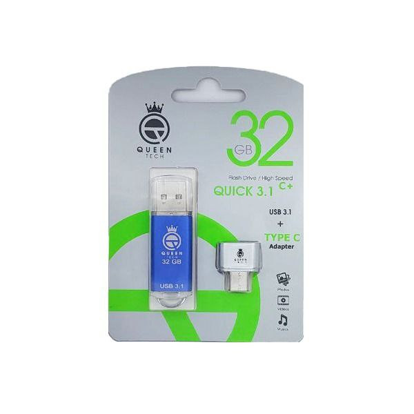 فلش مموری کوئین تک مدل QUICK USB3.1 CPLUSظرفیت 32 گیگابایت به همراه مبدل USB-C