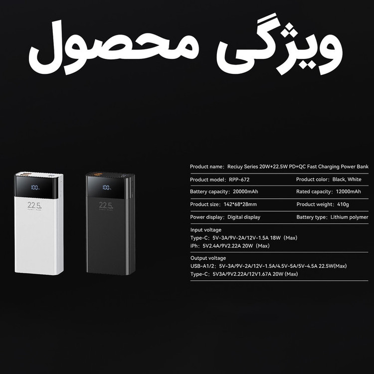 مناسب برای شارژ: گوشی موبایل , تبلت , دوربین , اسپیکر بلوتوثی