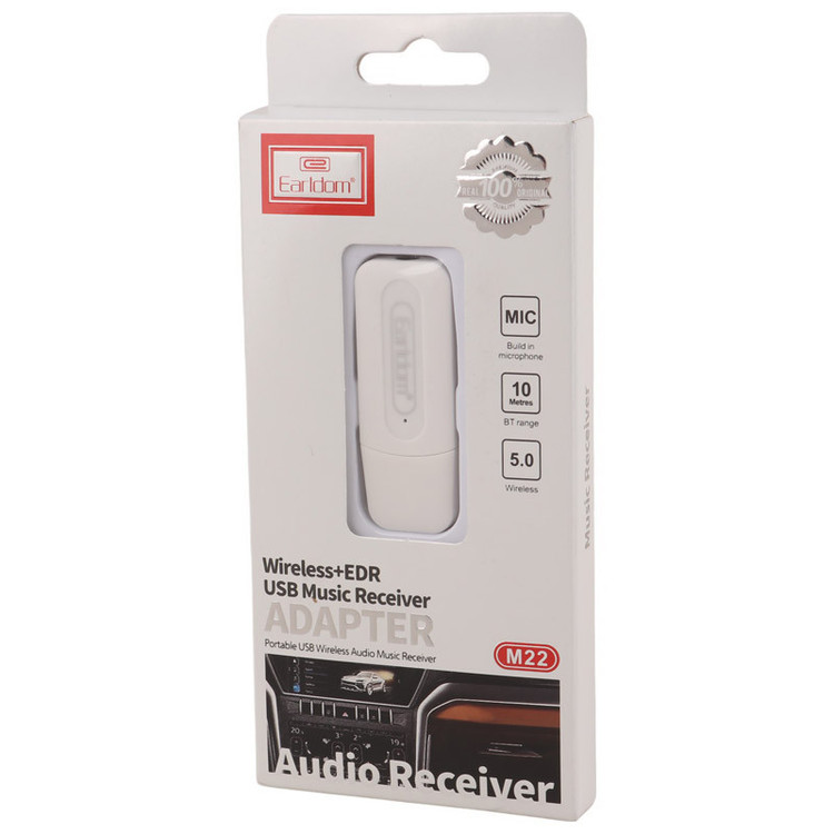 دانگل بلوتوث خودرو Earldom ET-M22 AUX بهترین راه حل برای تبدیل پخشکننده قدیمی ماشین به سیستم بیسیم! با قابلیت اتصال آسان، کیفیت صدای عالی و مکالمه شفاف. خرید آنلاین با ضمانت اصالت.
