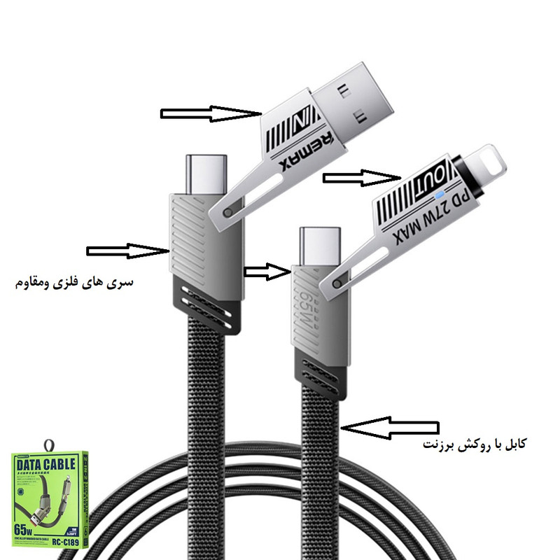 کابل تبدیل USB-C / USB به USB-C / لایتنینگ ریمکس مدل RC-C189 طول 1 متر
