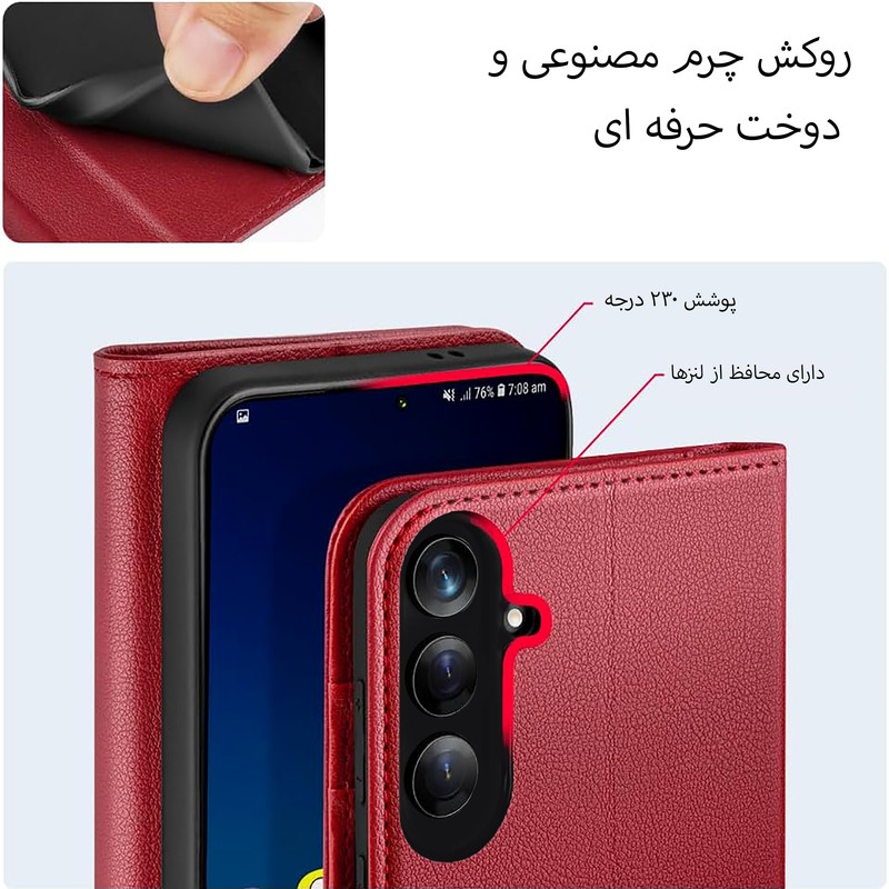 قابلیت تبدیل شدن به استند , دارای محفظه نگهداری کارت , دارای قفل آهنربایی , لبه های برجسته برای محافظت دوربین , لبه های برجسته برای محافظت صفحه نمایش , پشتیبانی از شارژ بیسیم , مقاوم در برابر خط و خش