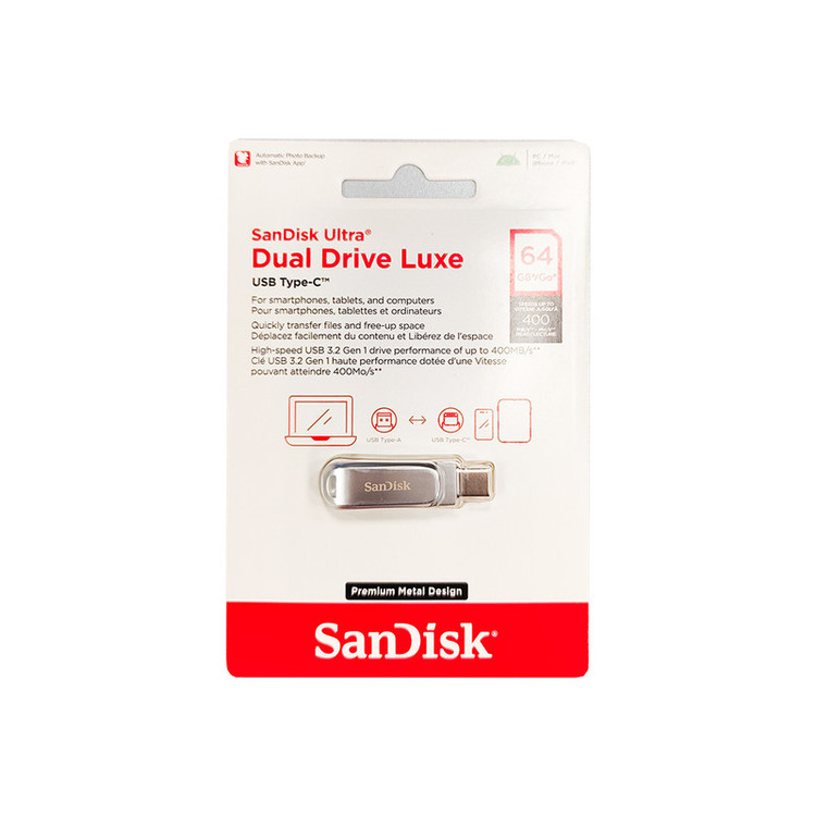 فلش مموری سن دیسک مدل Ultra Dual Drive Luxe ظرفیت 64 گیگابایت با رابط USB 3.2