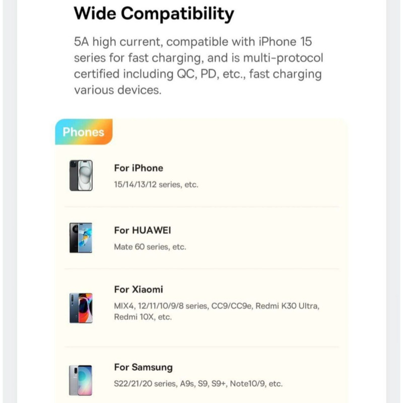 سازگار با: دستگاه های دارای درگاه تایپ سی با حداکثر توان ۱۰۰ وات و آیفون ۱۵