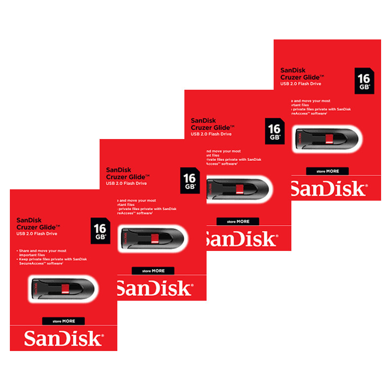 فلش مموری سن دیسک مدل CRUZER GLIDE CZ60 ظرفیت 16 گیگابایت بسته 4 عددی